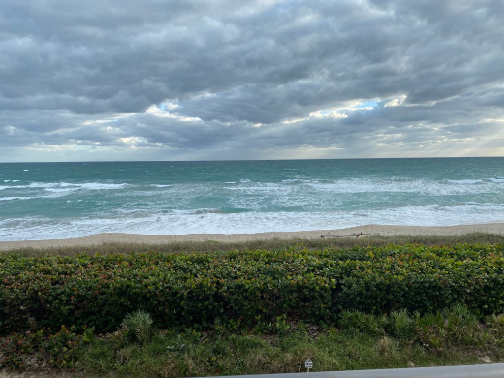 Jerry and I are once again “snowbirds ” in Jensen Beach, Florida. We arrived several days ago to the same condo building as last year, but thankfully not the same unit. This one has updated and simple decor that will be quite comfortable for the next almost three months. The picture above is from our balcony. I love the beauty and the peace and the consistency that the ocean generates. It is the perfect setting to reflect on the past and to plan for the future.